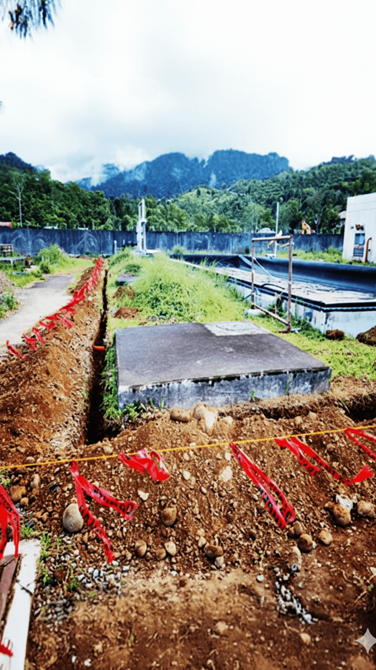 - Excavation, installation of flexible conduit, cable pulling, grounding & backfilling on existing perimeter lighting pole foundation.